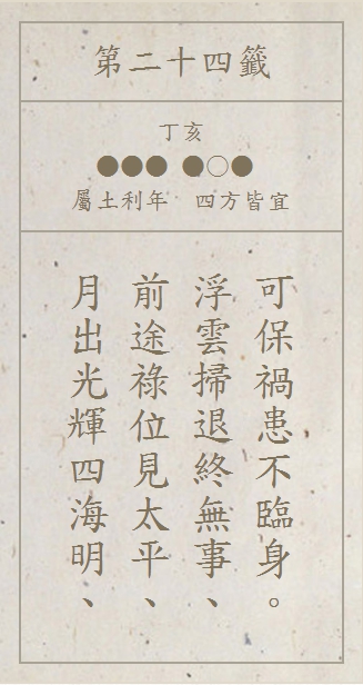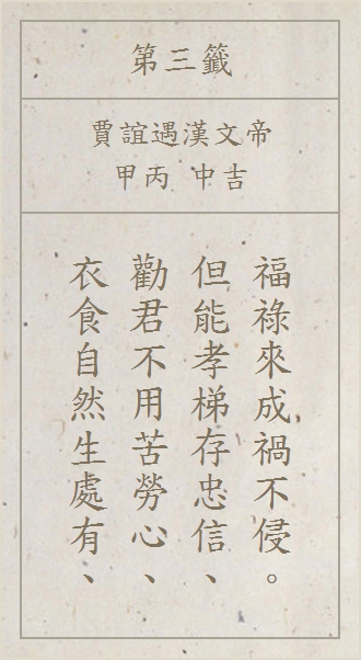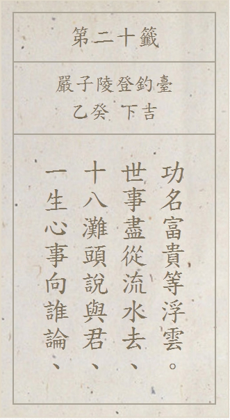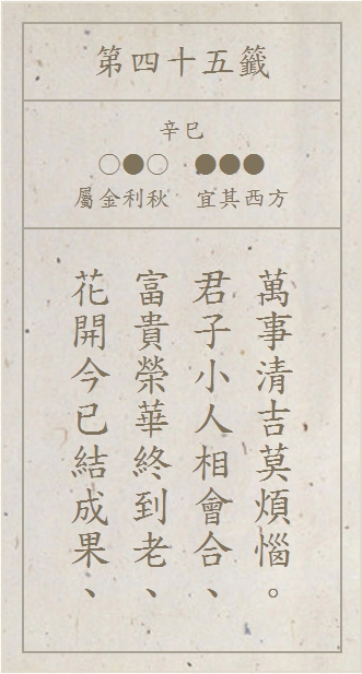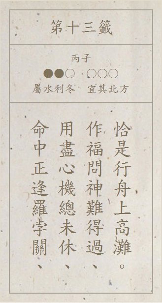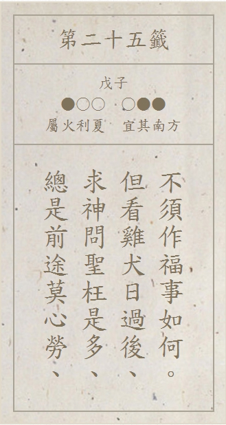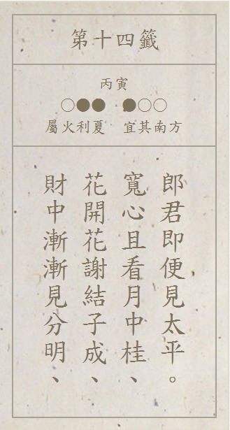 請選擇你在廟宇求得的籤詩,或是至 廟宇網站線上求籤