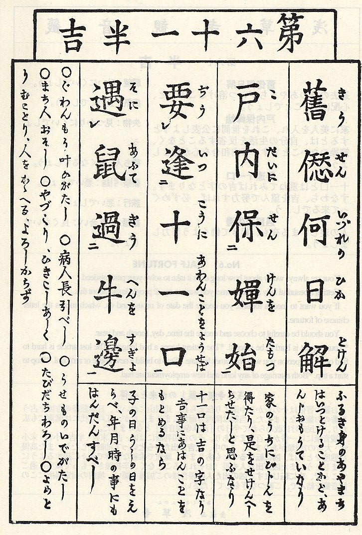 如果試著將十一和口重疊起來看的話,會變成吉字。也就是說,如果期望吉事而努力做的話,必定會到來吧。