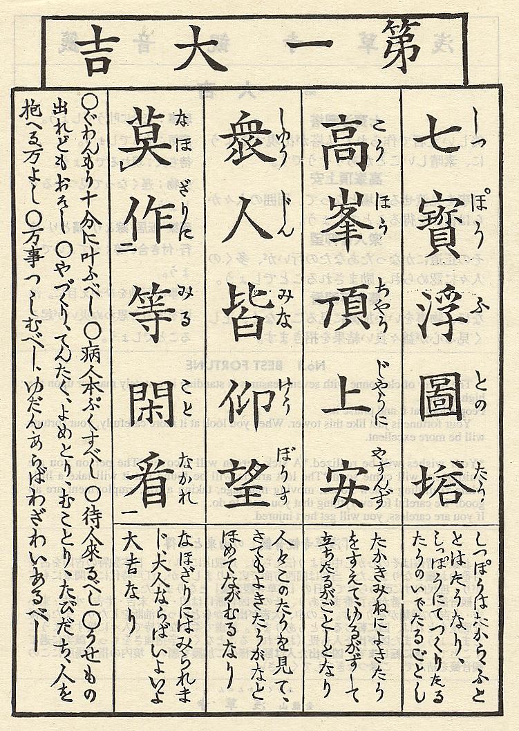 求的籤詩是:東京淺草觀音寺一百籤 中的 第一籤