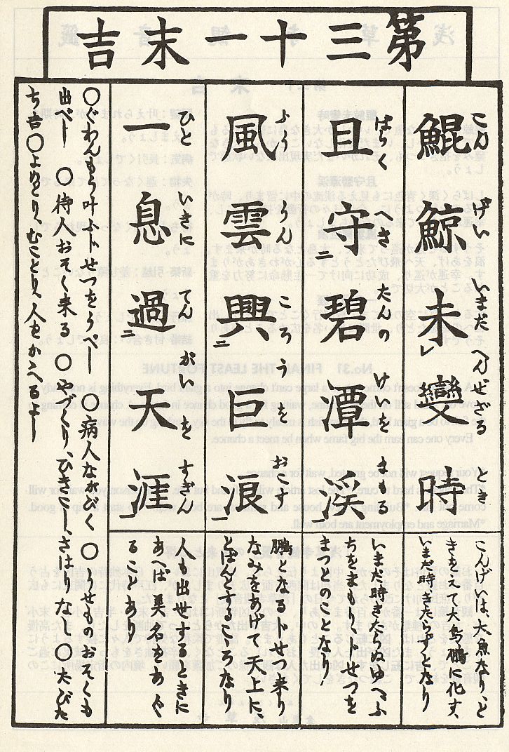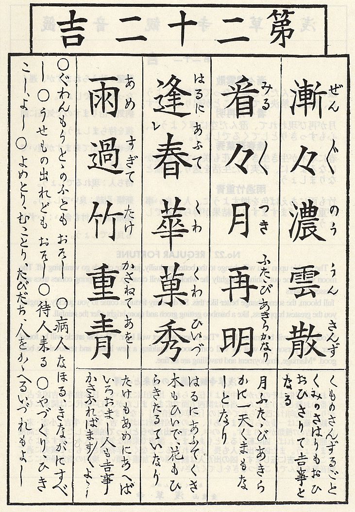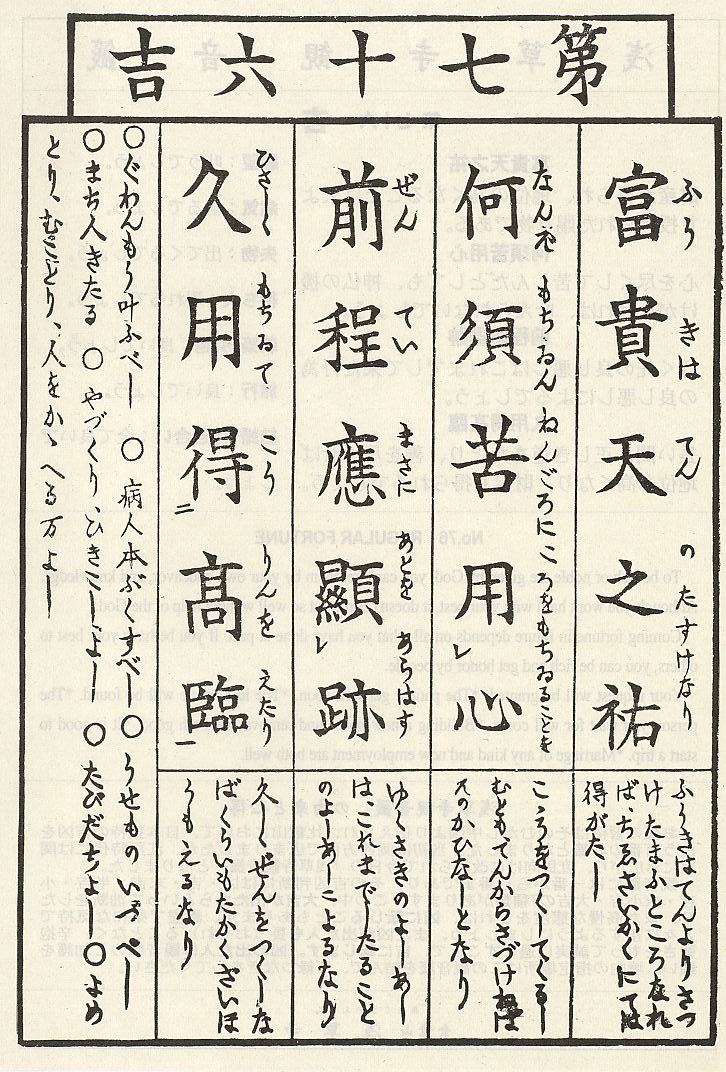 日本佛寺多用此本籤詩,在日本佛寺的籤詩稱為『佛籤』。鑒於台灣人最常在東京淺草觀音寺(金龍山)求見此本籤詩,本籤詩據傳是中國『天竺靈籤』傳至比叡山(在日本通稱為『漢詩一百』,也稱作『元三大師百御籤』), 由於這本籤詩在日本盛行,本地信眾多在東京淺草金龍山觀音寺得見,所以我們稱之為『淺草金龍山觀音寺一百籤』,以方便辨識。